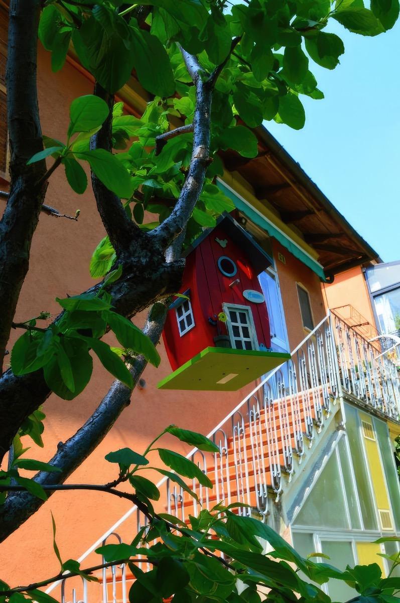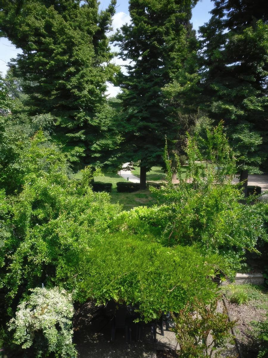 Our house boasts a charming garden with fruit trees available to our guests. The garden borders the Melloni Park, a unique corner of tranquility and nature. This park, created from the gardens of a 19th-century villa, is famous for its variety of trees, including a rare giant sequoia.